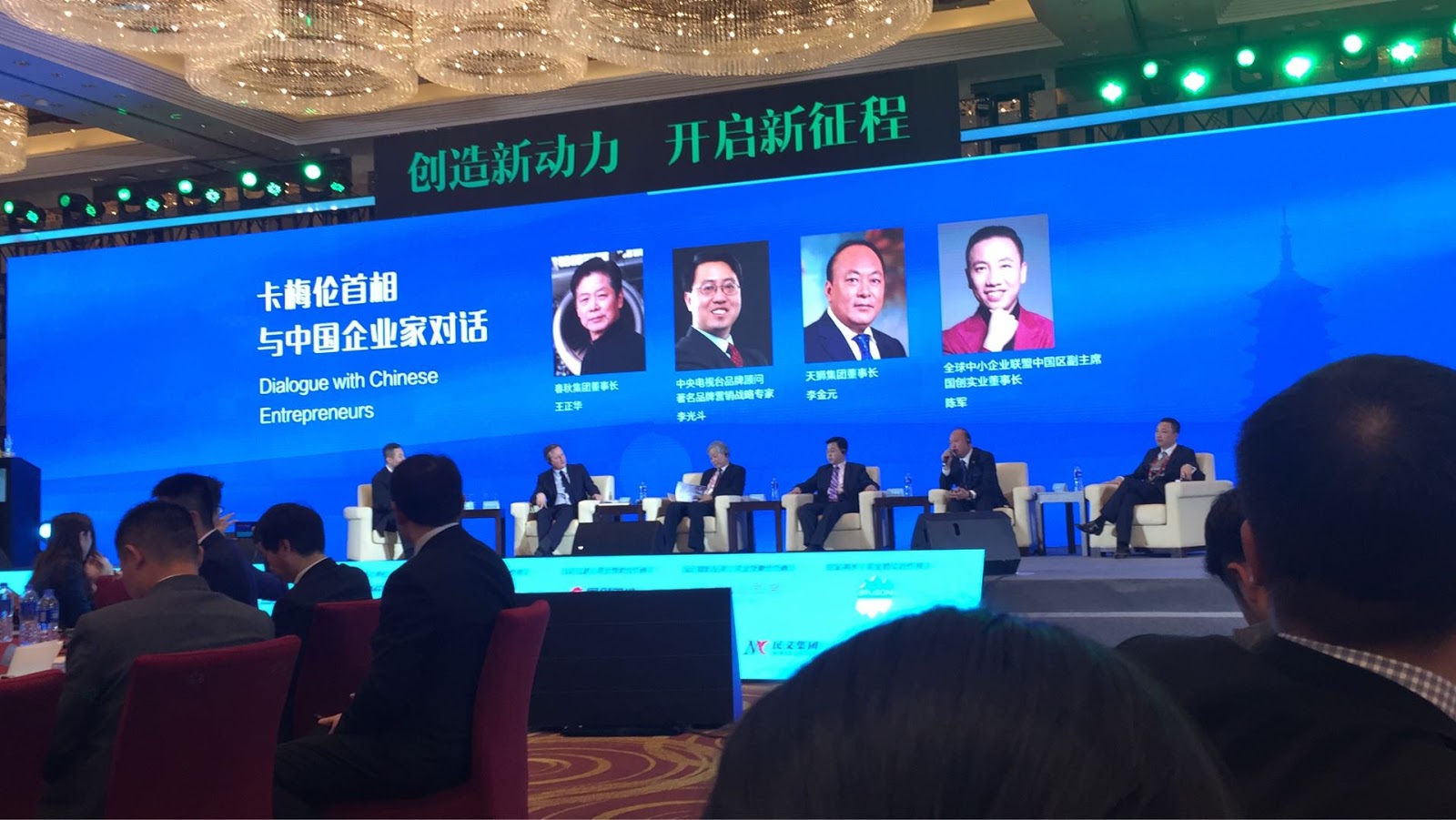 ระหว่างการประชุม ประธานหลี่ จินหยวน ได้รับเชิญให้ร่วมเสวนากับนายเดวิด คาเมรอน อดีตนายกรัฐมนตรีอังกฤษ และบรรดาผู้ประกอบการชาวจีน ประกอบด้วยหวัง เจิ้งฮัว ประธาน Chunqiu Group, หลี่ กวงโตว ที่ปรึกษาด้านแบรนด์ของ CCTV และผู้เชี่ยวชาญกลยุทธ์การตลาดแบรนด์ชื่อดัง, และเฉิน จุน ประธาน Guo-Chuang Limited ซึ่งได้แลกเปลี่ยนแนวคิดเชิงลึกกับเดวิด คาเมรอน ในประเด็นโลกาภิวัตน์และแนวทางที่รัฐบาลต่างๆสามารถสนับสนุนการพัฒนาธุรกิจ ประธานหลี่ จินหยวน กล่าวว่า กิจกรรมในการประชุมครั้งนี้ช่วยกระชับความสัมพันธ์ระหว่างจีน สหราชอาณาจักร ฝรั่งเศส เกาหลีใต้ และประเทศอื่นๆ ทั้งยังถือเป็นการวางรากฐานที่ดีเยี่ยมในด้านความร่วมมือและการแลกเปลี่ยนในภาคธุรกิจ
