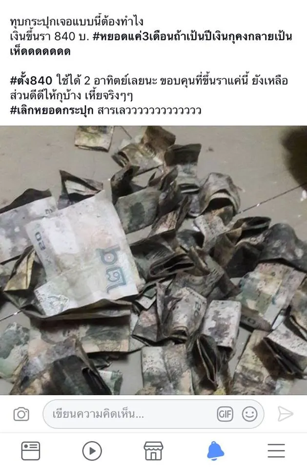 เพจผู้บริโภคแชร์ภาพ ของหนุ่มคนหนึ่งที่อุตส่าห์หยอดกระปุกมานมนานราว 3 เดือน พอทุบกระปุกออกมาถึงกับกุมขมับ เงินกว่า 840 บาทดันมาขึ้นราซะอย่างงั้น..ราวกับเงินปากผี เหมือนโดนไฟไหม้