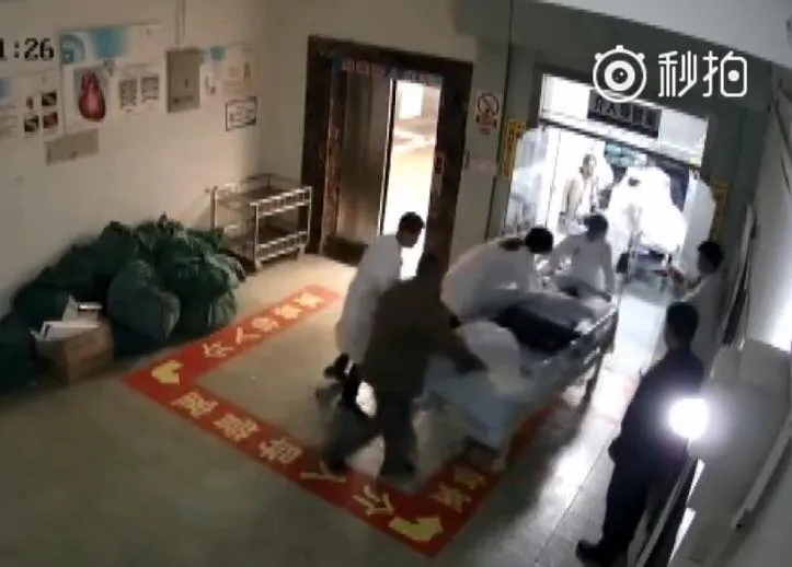 แพทย์หญิงจางหงหยู่ว์ หนึ่งในทีมแพทย์ที่ติดตามมาด้วยสังเกตเห็น จึงรีบเข้ามาปั๊มหัวใจที่ข้างเตียงรถเข็นอย่างรวดเร็ว โดยแพทย์ต้องปั๊มไปเดินไป เนื่องจากเตียงผู้ป่วยถูกเข็นไปด้วย