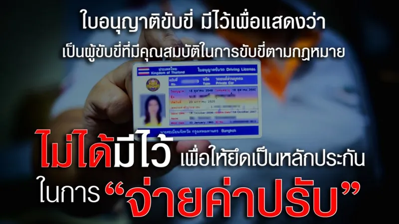 ใบอนุญาตขับขี่ มิได้มีไว้ เพื่อให้ยึดเป็นหลักประกันในการต้องจ่ายค่าปรับตามกฎหมาย