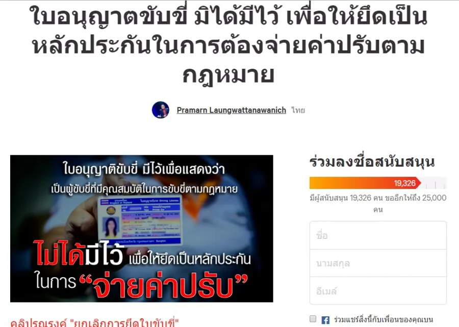 แหล่งที่มา: https://www.change.org/p/ใบอนุญาตขับขี่-มิได้ได้มีไว้-เพื่อให้ยึดเป็นหลักประกันในการต้องจ่ายค่าปรับตามกฎหมาย?source_location=petition_footer&algorithm=curated_trending&original_footer_petition_id=12946698&grid_position=7&pt=