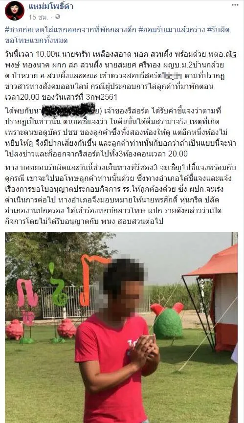 เตือนภัย!! ลูกเจ้าของรีสอร์ตเมายับ ไล่แขกหมดรีสอร์ตกลางดึก บอกเดี๋ยวคืนเงินให้