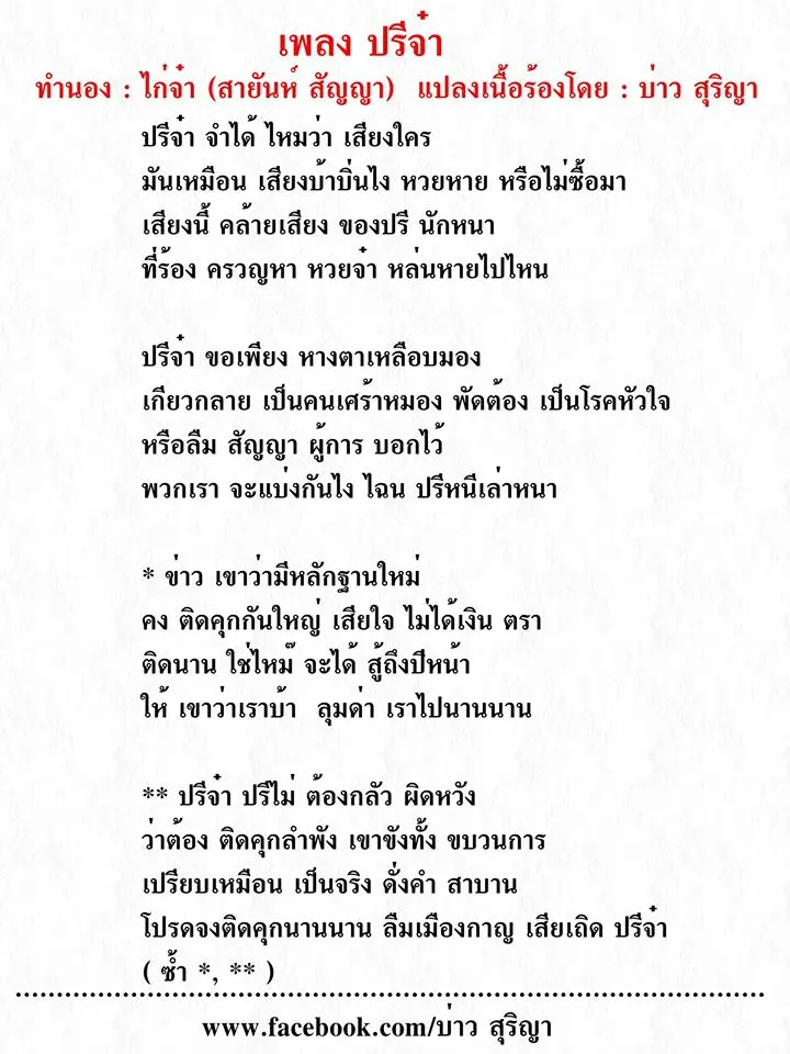 ด้านชาวเน็ตที่ติดตามคดีหวย 30ล้าน แต่งเพลงให้ครูปรีชา ชื่อเพลง ปรีจ๋า (ทำนอง ไก่จ๋า ของ สายันห์ สัญญา ) แปลงเนื้อร้องโดย บ่าว สุริญา