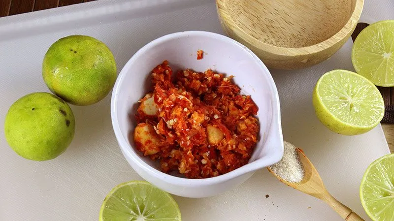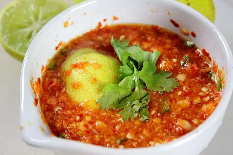 • พริกสด กระเทียม มะนาว