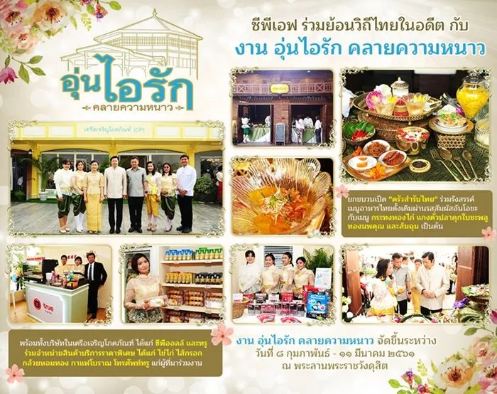 โดยหนึ่งในภาคเอกชนที่จัดงานเครือเจริญโภคภัณฑ์ (ซีพี) ร่วมย้อนยุค โดยนำสินค้าและบริการของบริษัทในเครือ ได้แก่ บจ.เจียไต๋บมจ.เจริญโภคภัณฑ์อาหาร(ซีพีเอฟ) บมจ.ซีพีออลล์(ซีพีออลล์) และ บมจ.ทรู คอร์ปอเรชั่น (ทรู) อาทิ เมลล่อน เมล็ดพันธุ์พืชเจียไต๋ ไข่ไก่ ไส้กรอก ไอศครีมเอเต้ กล้วยหอมทอง กาแฟโบราณ โทรศัพท์ทรู มาจำหน่ายและบริการในราคาพิเศษให้แก่ประชาชนที่มาร่วมงาน