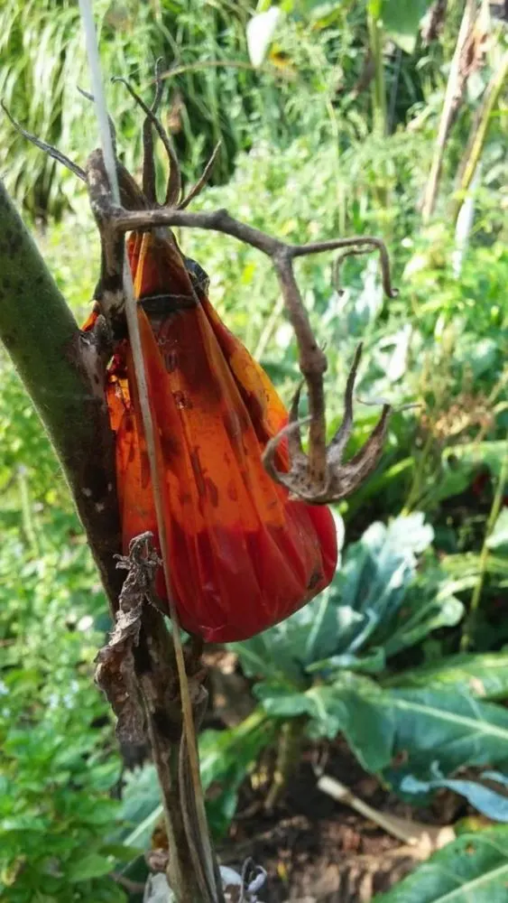 18. มะเขือเทศที่เน่าคาต้นดูคล้ายกับถุงพลาสติก