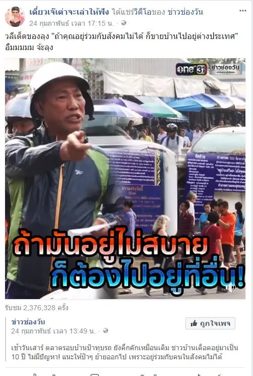วลีเด็ดของลุง "ถ้าคุณอยู่ร่วมกับสังคมไม่ได้ ก็ขายบ้านไปอยู่ต่างประเทศ" อืมมมมม จ้ะลุง