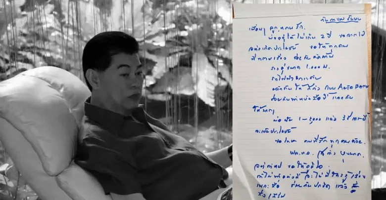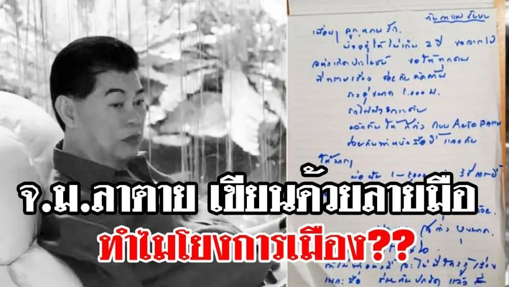 จมหมายลาตาย เขียนด้วยลายมือ ปรากฏข้อความลาตายลงชื่อ พล.ต.อ.สล้าง ทำไมโยงการเมือง??