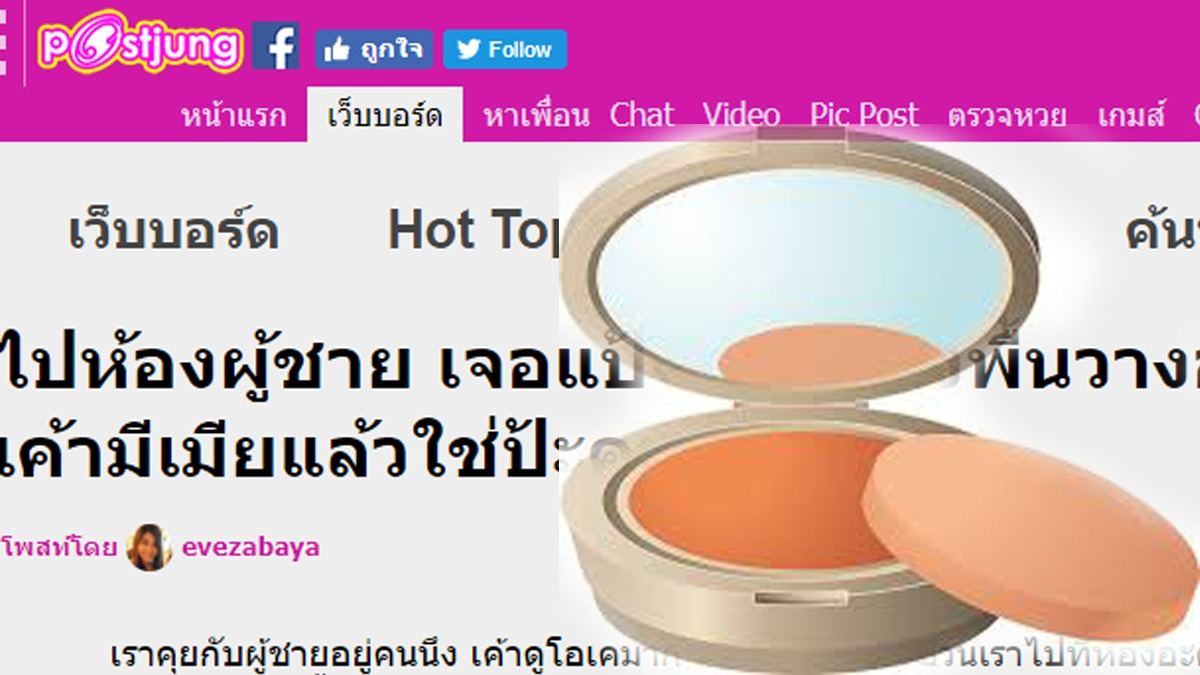 ไปห้องผู้ชาย เจอแป้งผสมรองพื้นวางอยู่บนโต๊ะเครื่องแป้ง นี่แปลว่าเค้ามีเมียแล้วใช่ป้ะคะ
