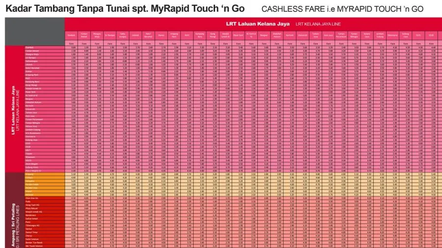 อย่างเช่น สาย Kelana Jaya line ซึ่งมีทั้งหมด 37 สถานี ระยะทาง 46.4 กิโลเมตร เก็บค่าโดยสารประมาณ 10 บาท (1.3 ริงกิต) สำหรับสถานีแรก (ถูกกว่าไทยที่ 15 บาท) และสถานีสุดท้ายที่ 43 บาท (5.3 ริงกิต) แต่หากไปต่อรถอื่นไปไกลกว่านั้น ราคาสูงสุดก็ไม่เกิน 67 บาท (8.3 ริงกิต) แต่หากเทียบเป็นเงินไทยโดยใช้สมมติฐานที่ว่ารายได้ประชาชาติต่อหัวของมาเลเซียสูงกว่าไทย 70% ก็จะพบว่าราคาในกรณีประเทศไทย จะเป็นเงิน 6 บาทสำหรับสถานีแรก และจนถึงสถานีสุดท้ายก็เพียง 25 บาทของไทยเท่านั้น