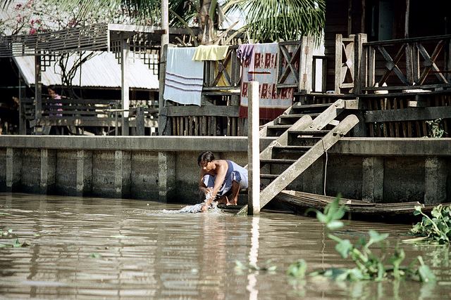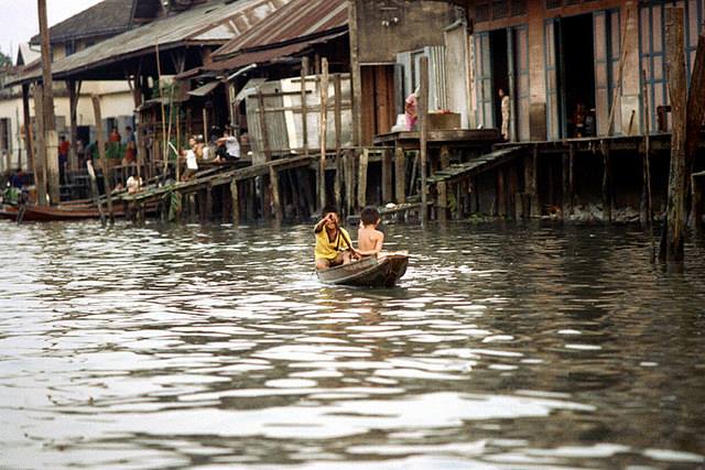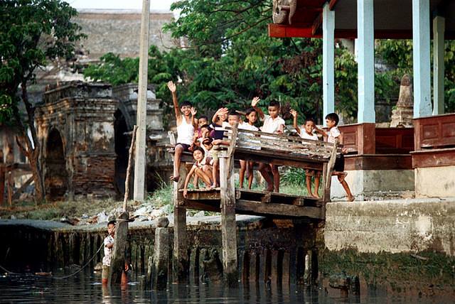 องค์ประกอบภาพสวยงามมาก เด็ก ๆ ที่บ้านริมน้ำ จะทำอะไรในสิ่งที่คนทั่วไปค