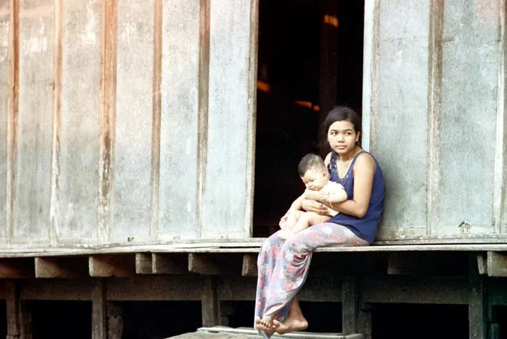 คุณแม่เลี้ยงลูก เหงา ๆ ไม่มีอะไรทำ ก็มานั่งดูแม่น้ำ คงจะเพลิน มีความสุข ตามประสาในยุคนั้น