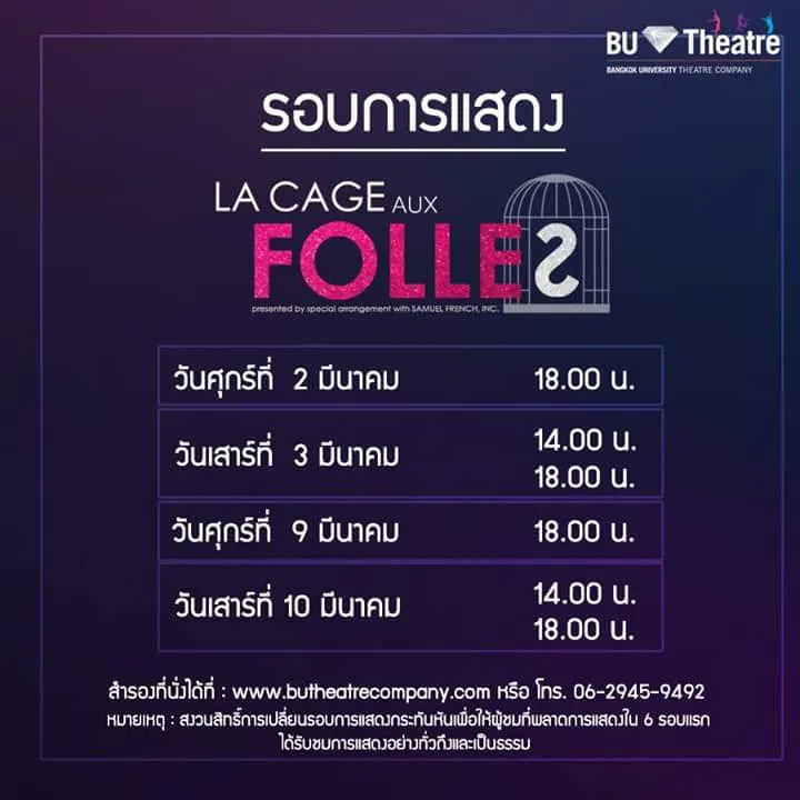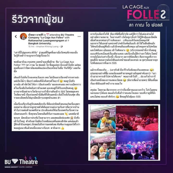 สุดยอดละครเพลงแห่งปี พ.ศ. 2561 "ลา กาฌ โอ ฟอลล์" โดยคณะละครมหาวิทยาลัยกรุงเทพ ครบเครื่องด้วยคุณภาพการแสดง โปรดักชั่น บทแปลอันยอดเยี่ยม ส่งตรงถึงท่านแล้ว เหลืออีก 3 รอบการแสดง เท่านั้น 9-10 มีนาคม นี้