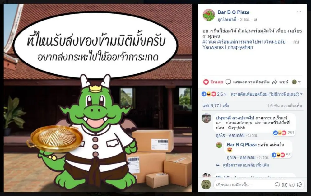 เพจ Bar B Q Plaza มาด้วยมุกกระทะที่แม่หญิงการะเกดอยากจะได้