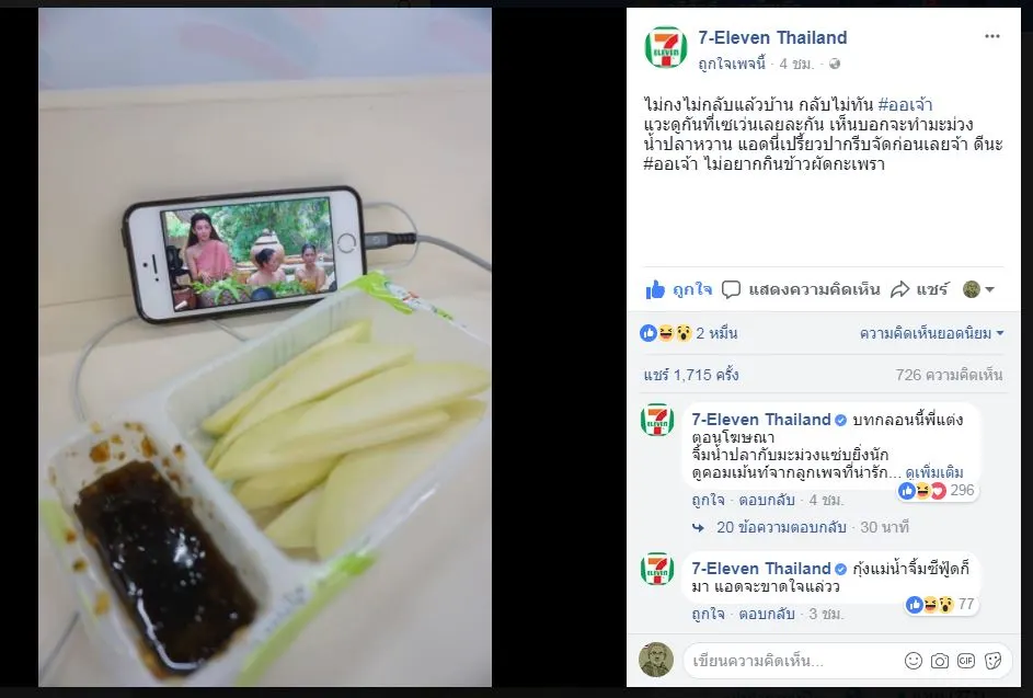 เพจ 7-Eleven Thailand มากับความน้ำลายสอ ด้วยมุกมะม่วงน้ำปลาหวาน