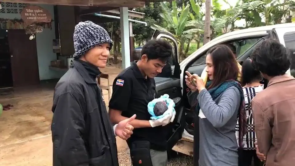 เมื่อเจ้าหน้าที่หันไปปรากฏว่า เห็นหัวเด็กโผล่จึงได้ทำการจอดรถทำคลอด ซึ่งได้คลอดเป็นเด็กผู้หญิง และได้นำหญิงดังกล่าว ส่งโรงพยาบาลทองผาภูมิต่อ
