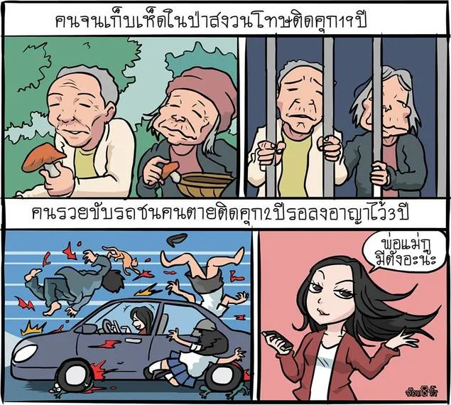 3. มีข่าวว่า "ตายายเก็บเห็ดพ้นคุก ยังแร้นแค้นขยาดป่าไม่เข้าใกล้" (16 มิถุนายน 2558: https://goo.gl/FaH5bg) แต่เห็นมีบ้านหลังใหญ่ มีรถ 6 ล้อ และมีสติ๊กเกอร์ "รับยกบ้าน" (อาชีพเป็นผู้รับเหมายกบ้าน?) ซึ่งก็น่าแปลกดี (7 กุมภาพันธ์ 2561 https://goo.gl/6HFYzz)