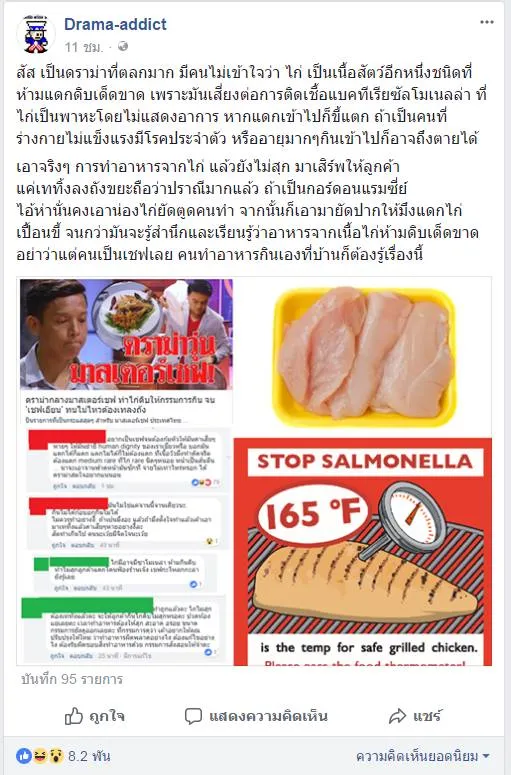 ล่าสุด 13/3/2561 ทางเพจดัง drama addict ได้ออกมาแสดงความเห็นเกี่ยวกับเรื่องนี้ว่า ไก่ดิบไม่ควรกิน ตามด้านล่าง