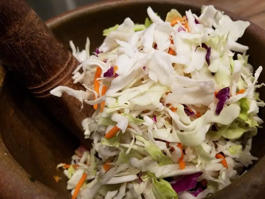 - กะหล่ำปลีหั่นฝอย ไม่ต้องบางมาก