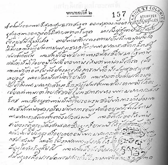 หนังสือออกพระวิสุทสุนธร ราชทูต ออกหลวงกัลยาราชไมตรี อุปทูต แลออกขุนศรีวีสารวิจาตรีทูต มาเถีงมูสูลายี ซึงใด้บังคับกุมปนัญีทังปวง ดวยัท่านสำแดงความยีนดีแลนับถือใด้ ให้สำเรจการทังปวงตามพระราชหฤไทยพระมหากระสัตราธีเปนเจ้าอัตโน แลบัดนี้ใด้พบท่าทางอนัจเขียนมาให้ท่าน แจ้งว่ามีน้ำใจยอนัยีนดีตอท่าน