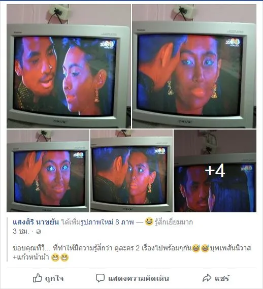โอ๊ย!!!! ทั้งขำทั้งสงสาร ก็ขอให้น้องเจ้าของเฟซได้ตังค์ซื้อทีวีใหม่เถอะ จะได้ไม่ต้องมาชมละครสองเรื่องควบให้สีบาดตาแบบนี้อีกต่อไป 55555