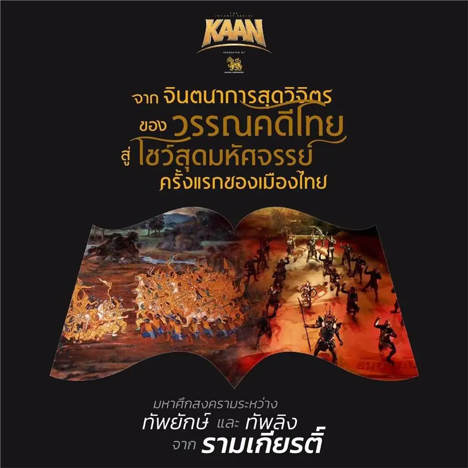 - KAAN Show (คานโชว์) เป็นการแสดงสดแบบ Live Performance ที่มีส่วนผสมของการแสดง, โปรดักชั่นอลังการ, แสงสีเสียง และภาพยนตร์
