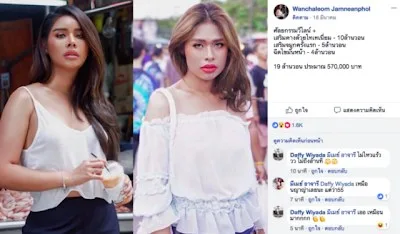 ผู้ใช้เฟซบุ๊ก Wanchaleom Jamneanphol สาวประเภทสองได้เผยแพร่เรื่องราว การทำหน้าศัลยกรรมที่เกาหลีใต้ ให้เหมือน ดาราสาว ญาญ่า อุรัสยา เสปอร์บันด์ โดยเธอใช้เงินไปถึง 570,000 บาท ซึ่งตอนนี้ทำหน้าผ่านไปได้ 2 เดือนแล้ว โดยได้โพสท์ระบุว่า