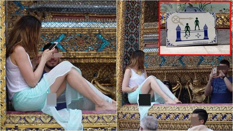 ชาวเน็ตวิจารณ์ยับ! สาวต่างชาติ ปีนขึ้นนั่งโพสท่าถ่ายรูปบนระเบียงวัดพระแก้ว โดยไม่สนป้ายห้าม!