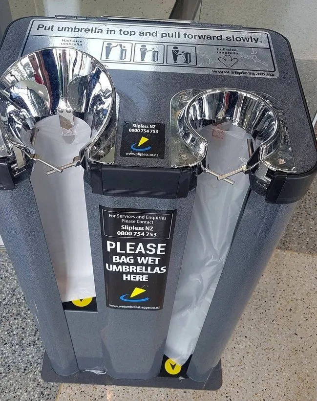 เครื่องที่ตั้งอยู่ในห้างสรรพสินค้า และจะช่วยเก็บร่มไว้ให้