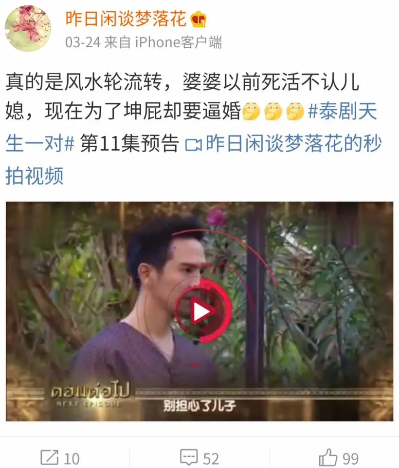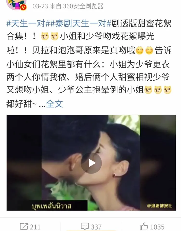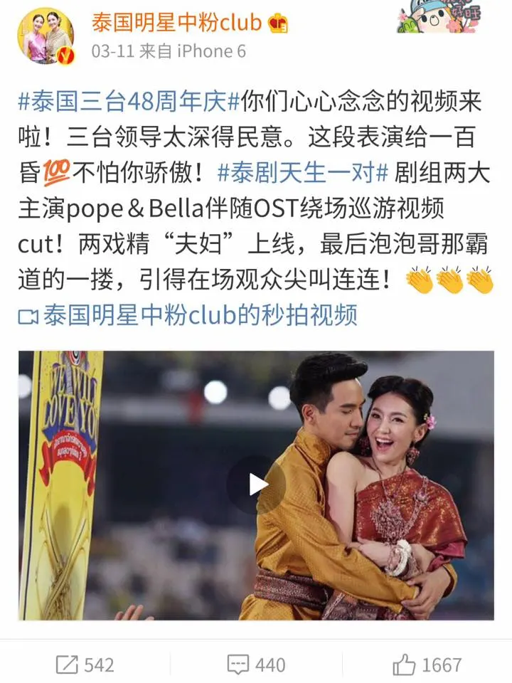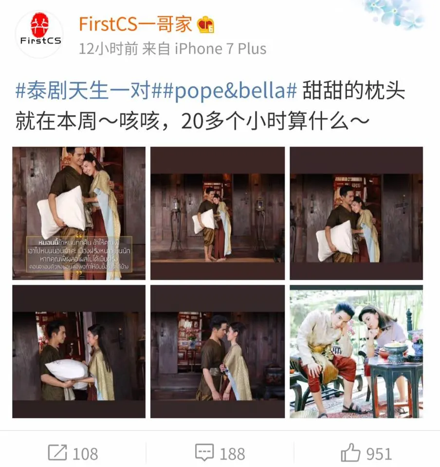 ช่วงนี้เมื่อเปิดเวยป๋อ โซเชียลมีเดียชื่อดังของจีนก็จะเห็นผู้ใช้งานชาวจีนที่สนใจละครไทยจำนวนไม่น้อยแห่โพสต์ภาพและคลิปของนักแสดงจากละครไทยยอดยอดฮิตเรื่อง “#บุพเพสันนิวาส” และมีคนกดไลค์กดแชร์กันไปเป็นจำนวนมาก โดยแฮชแท็ก #泰剧天生一对 ในเวยป๋อมียอดรีชถึง 240 ล้าน ครั้ง จำนวนคอมเมนท์อีก 82,000 ถูกอกถูกใจคอละครไทยในจีนอย่างมาก