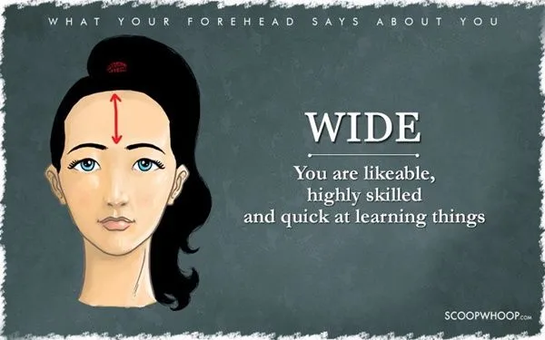 2.หน้าผากกว้าง คนที่มีหน้าผากกว้าง มักเป็นคนที่เรียนรู้เร็ว ฉลาดเป็นกรด มีความสามารถ มีเหตุผล และมักเป็นที่รักของคนรอบข้าง
