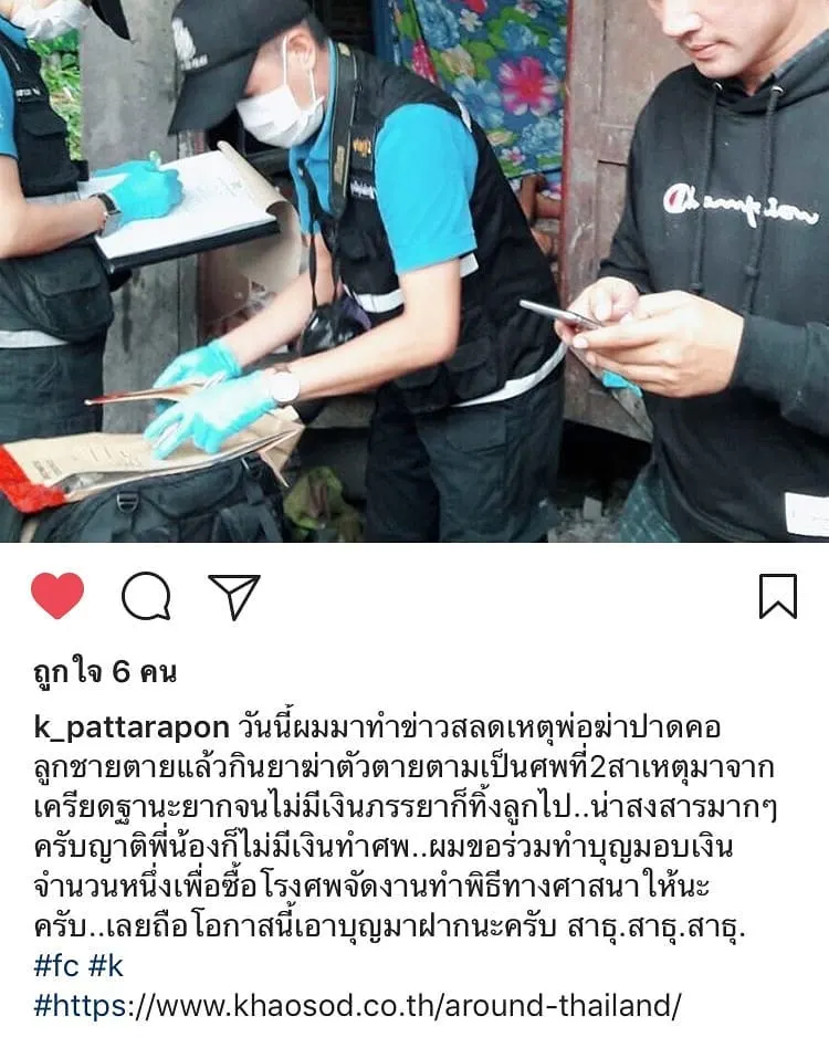 พรุ่งนี้แพทอยากไปช่วยซื้อโรงศพ ให้กับคนที่จากไปทั้ง2 คน ชีวิตเลือกเกิดไม่ได้ คนเรามีเหตุของชีวิต จากข่าวนี้ สลดใจและสงสารมาก แพทขอเป็นส่วนหนึ่งขอช่วยพวกเขาเท่าที่แพทจะช่วยได้ เพื่อครั้งสุดท้ายของพวกเขา ขอให้ทั้ง2. ไปสู่สุขคติ ไปสู่ที่ชอบๆ ไปสู่ภพภูมิที่ดี หลุดพ้นจากทุกข์ทั้งปวงด้วยเถิดสาธุ RIP