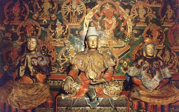 พระเจ้าซรอนซันกัมโป (กลาง) เจ้าหญิงเวนเชิง (ขวา) เจ้าหญิงภริคุติ (ซ้าย)