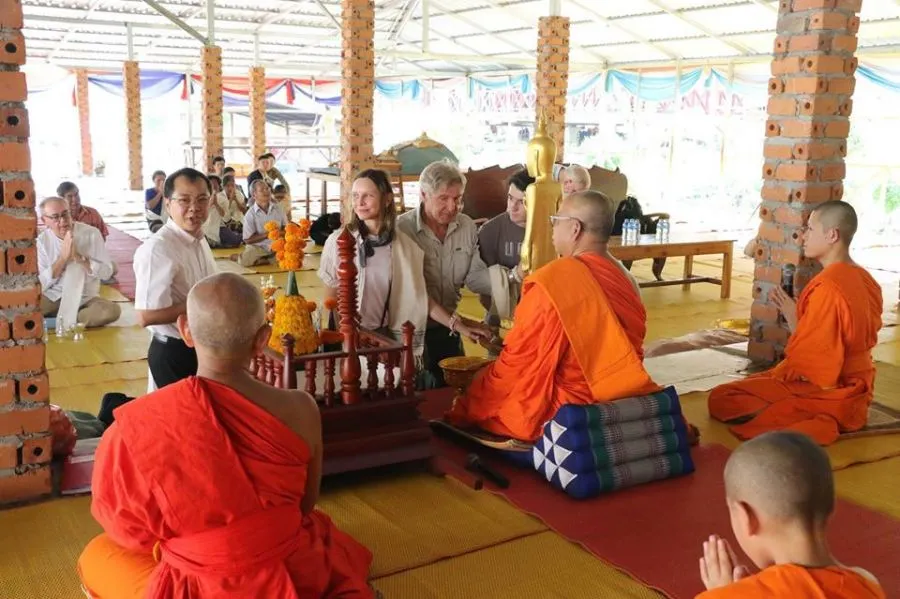 ซึ่ง แฮร์ริสัน ฟอร์ด ได้ถวายพระพุทธรูปปางประทับยืนแก่วัดในหลวงพระบาง และเข้าพิธีสวดมนต์ กรวดน้ำ พร้อมถ่ายรูปกับพระและชาวบ้านเป็นที่ระลึก สร้างความประทับใจกับชาว สปป.ลาว ในโลกออนไลน์เป็นอย่างมาก กับความเป็นกันเองของดาราดัง