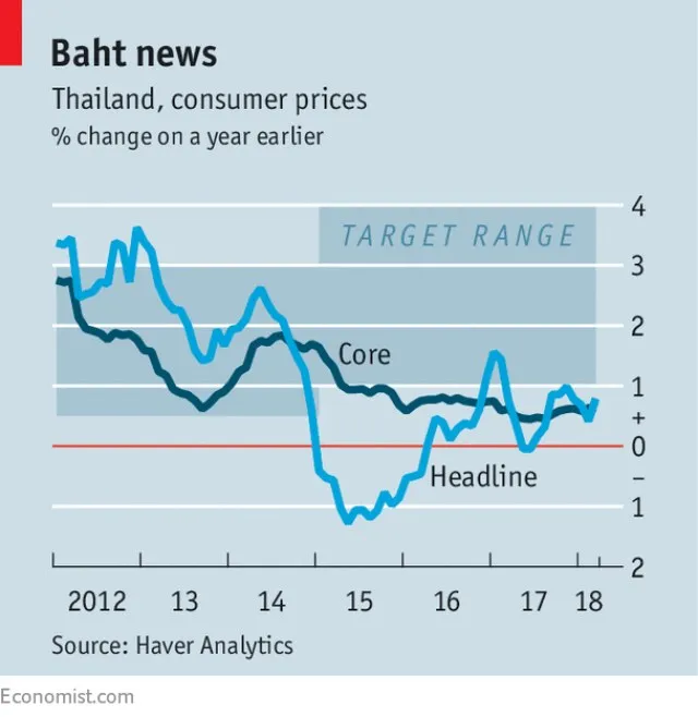 ดัชนีราคาผู้บริโภคไทยเพิ่มขึ้นเพียง 0.8% ในเดือนมีนาคม (ภาพจาก The Economist)