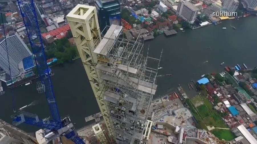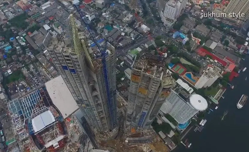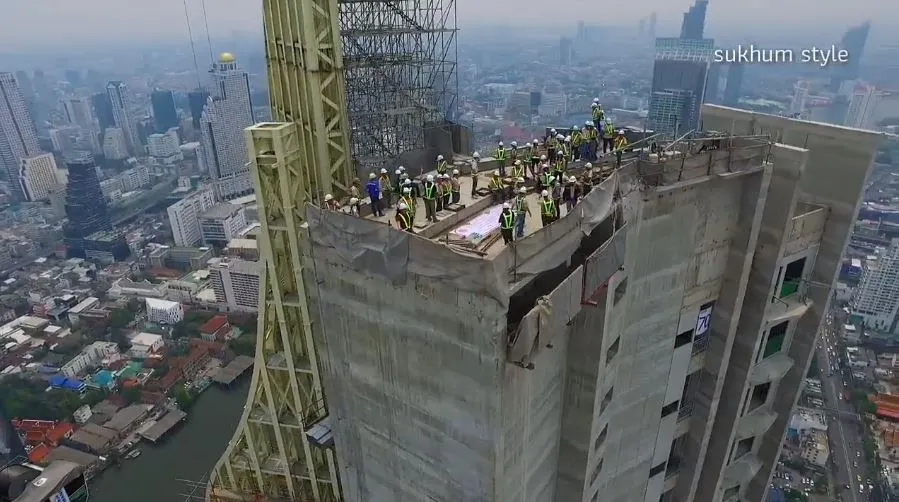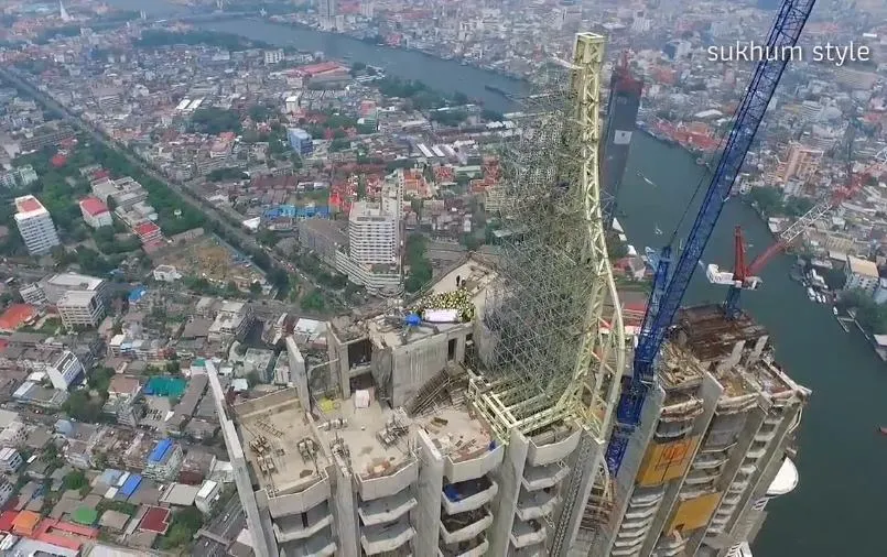 ซึ่งตึกดังกล่าวได้ทำการก่อสร้างถึงส่วนปลายยอดที่ความสูงอยู่ที่ 317.95 เมตรซึ่งสูงกว่าตึกมหานคร 3.75 เมตร และมีความสูงจากระดับพื้นถนนถึงชั้นหลังคา 288.7 เมตร โดยมีทั้งหมด 70 ชั้น Italian-Thai Development เป็นผู้ดำเนินการก่อสร้างโครงการนี้