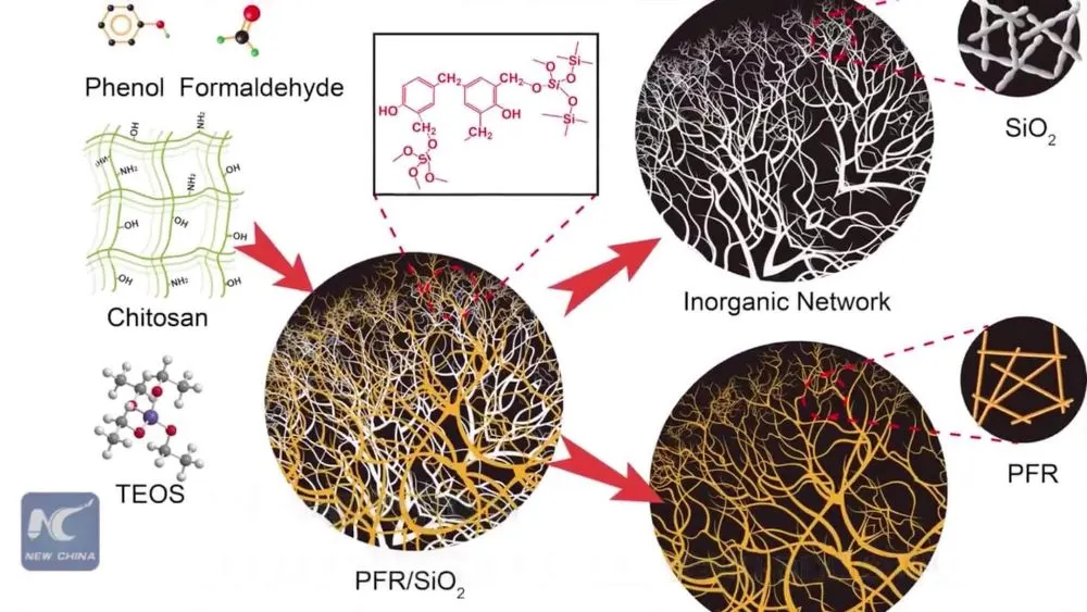 คณะนักวิจัยของมหาวิทยาลัยวิทยาศาสตร์และเทคโนโลยีแห่งประเทศจีน (USTC) ในเมืองเหอเฝย มณฑลอานฮุยทางจีนตะวันออก ได้พัฒนาวัสดุก่อสร้างชนิดใหม่ โดยเป็นวัสดุแอโรเจล (aerogel) ที่ผลิตจากฟีนอล-ฟอร์มาลดีไฮด์ เรซิน (phenol formaldehyde resin) และซิลิกา (silica)