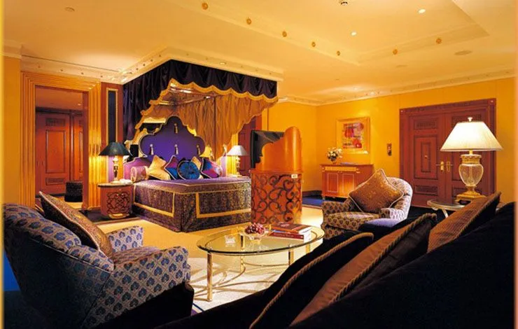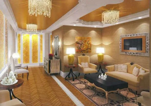 การตกแต่งในคฤหาสน์จะเป็นรูปพระอาทิตย์กับดอกบัว วัสดุที่ใช้ตกแต่งก็ เช่น คริสตัล หินอ่อน และเพิร์ล
