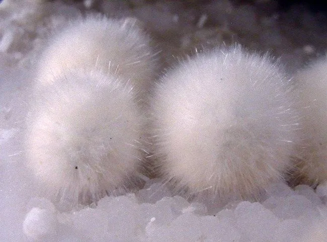 15.แร่ okenite ที่มีลักษณะขนปกปุย