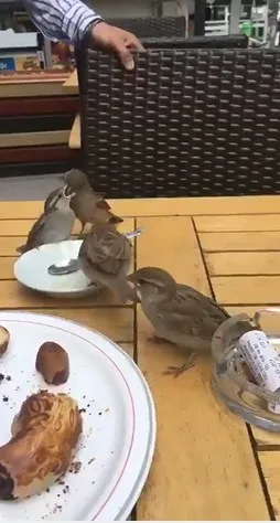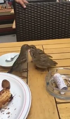 โซเชียลได้มีการแชร์คลิปสุดน่ารัก ของแม่นกที่พาลูกๆออกมากินอาหารกันนอกบ้าน สุขสันต์หรรษากันเหลือเกิน โดยในคลิปเผยให้เห็นว่า แม่นกป้อนอาหารในจานของลูกค้าคนหนึ่งในร้านอาหาร..กินกันอย่างเอร็ดอร่อย ช่างไม่เกรงใจกันเลย อะไรจะชิลปานน้านนนนนน แถมไม่กลัวคนด้วย...