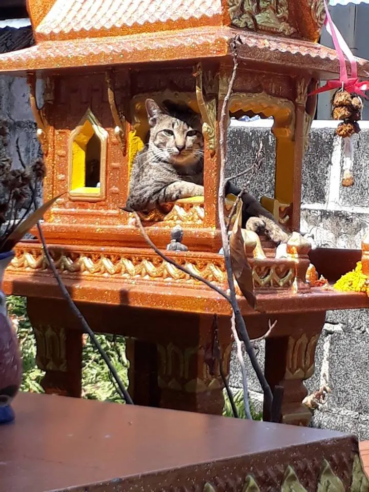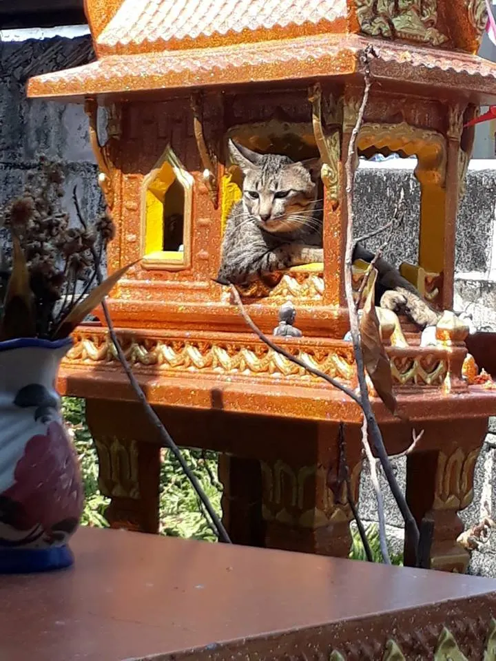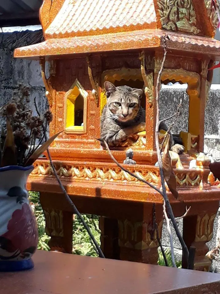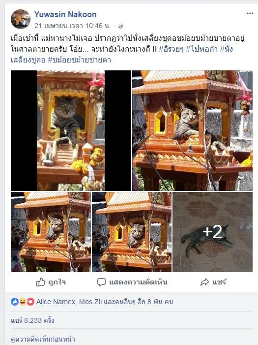 อย่างฮา!! เจ้าของตามหาแมวไม่เจอ สุดท้ายพบมันนั่งชม้อยชม้ายชายตาอยู่ที่ศาลตายาย