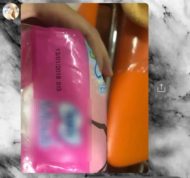 โลกออนไลน์ได้มีการแชร์ภาพการแชทไลน์ คุยกัน พร้อมภาพผ้าอนามัยยี่ห้อหนึ่ง ที่มีเชื้อราขึ้นเต็มแผ่น และมีเชื้อราทั้งห่อ!! ...นึกว่าเป็นผ้าอนามัยชาโคลซะอีก... เผยเพิ่งซื้อมาจากห้างสรรพสินค้าชื่อดัง ฉีกพลาสติกห่อผ้าอนามัย กำลังจะเอามาใช้ เจอแบบนี้เล่นเอาช็อก!ตาค้างกับภาพที่เห็นกันเลยทีเดียว ซึ่งสาวรายนี้ได้เชควันหมดอายุของผ้าอนามัยแล้วปรากฏ เป็นวันที่ 13 /1/2018 ซึ่งไม่แน่ใจว่าเป็นวันหมดอายุหรือวันผลิต