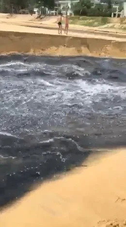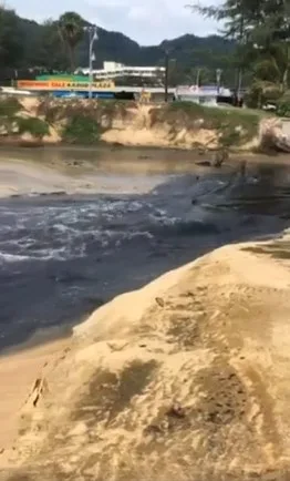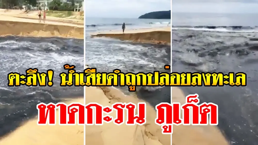นักท่องเที่ยวตะลึง! น้ำดำปี๋ไหลลงหาดกะรน ภูเก็ต