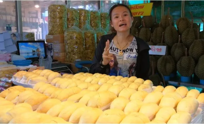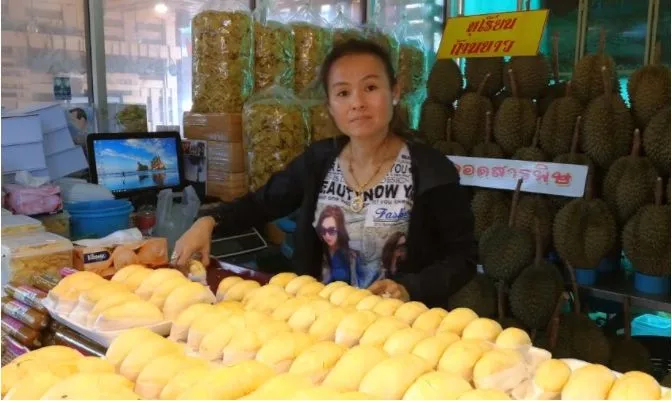 แม่ค้าร้านทุเรียนได้ให้สัมภาษณ์ว่า มีสวนทุเรียนที่ จ.ระยอง ทุเรียนของร้านที่ใช้ในการปลูกแบบปลอดสารพิษ ไม่มีการชุบน้ำยาเร่งให้ทุเรียนสุก ส่วนใหญ่จะขายพันธุ์ก้านยาว พันธุ์หมอนทอง และพันธุ์ชะนี โดยแบ่งเป็น 3 เกรด