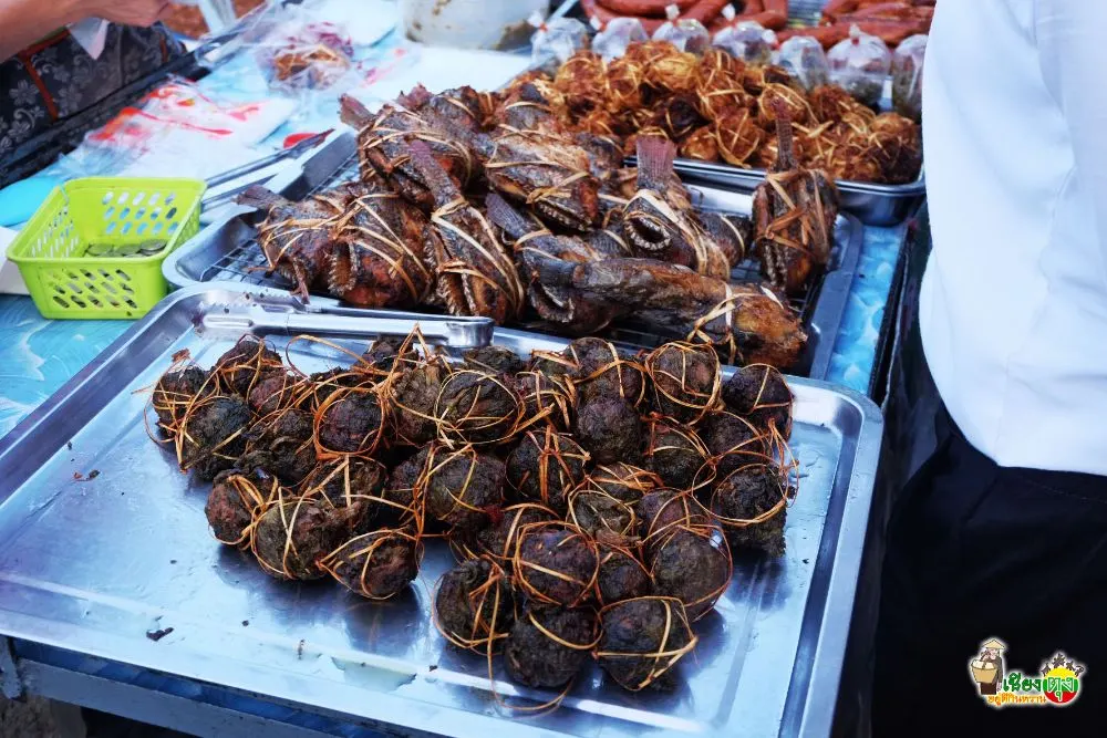 ดอกแคทอดยัดใส้หมู ปลาทอดยัดไส้พริก หน่อไม้ทอดยัดไส้หมู กินกับข้าวเหนียวร้อนๆ