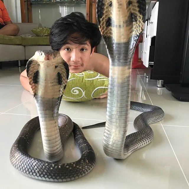 โลกออนไลน์ได้ฮือฮากับภาพหนุ่มน้อยรักสัตว์ แต่สัตว์ที่ว่า ไม่ใช้น้องหมา น้องแมว น้องม้า แต่เป็นน้องงู แถม เป็นงูเห่า งูจงอาง