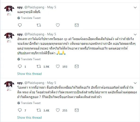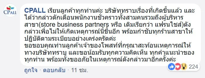 อัพเดท เราได้แจ้งไปทางทวิตของ cp all โดยแจ้งละเอียดเพิ่มเติมไปแล้ว เค้าว่าถ้ายังไงจะแจ้งมาอีกทีค่า ขอบคุณทุกคนมากน้า เห็นหลายคนเจอหนักกว่าเราอีก ตอบไม่หมดจริงๆ แต่อ่านทุกคนแล้วนะคะ จริงๆไม่ได้ติดใจเอาความหรือโกรธแค้นอะไร แต่แค่อยากให้ปรับปรุงการบริการให้ดีขึ้นค่า