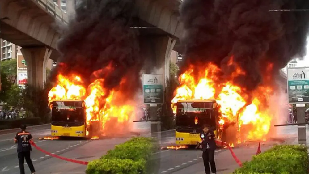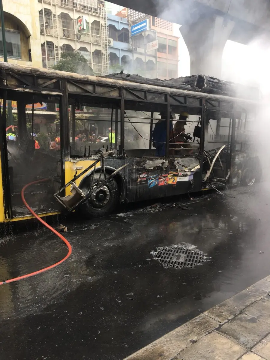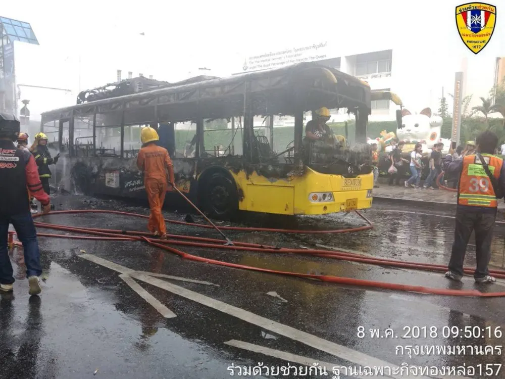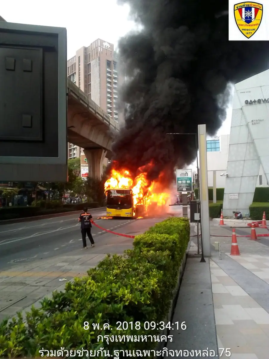 ด่วน! ไฟไหม้รถเมล์ หน้าเกตเวย์เอกมัย