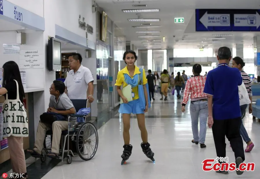 เร็วทันใจ! รพ.แห่งเดียวในเอเชียที่ให้ผู้ช่วยพยาบาลใส่โรลเลอร์เบรด