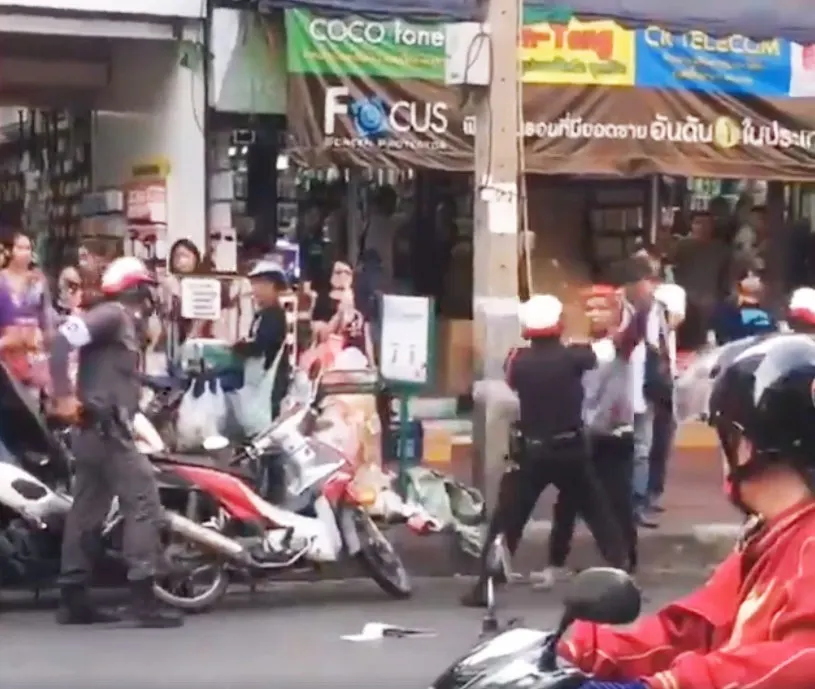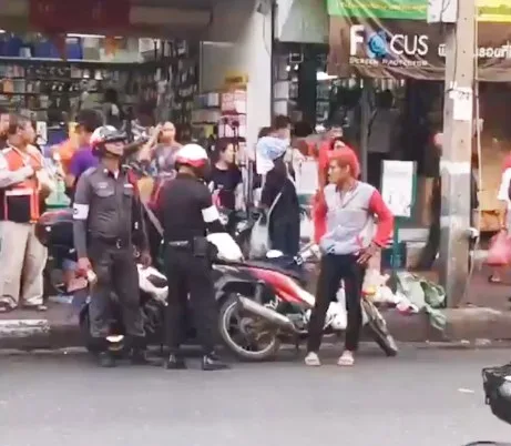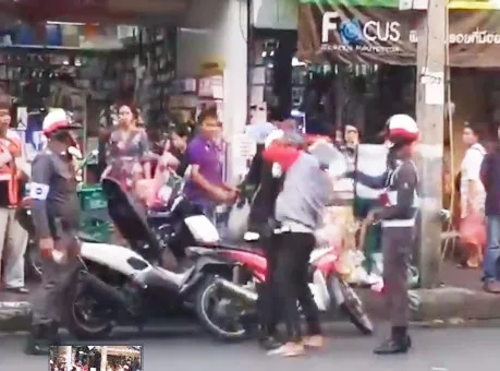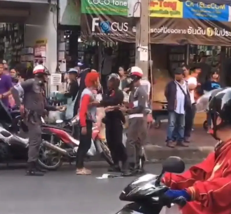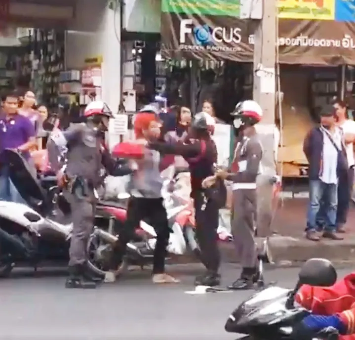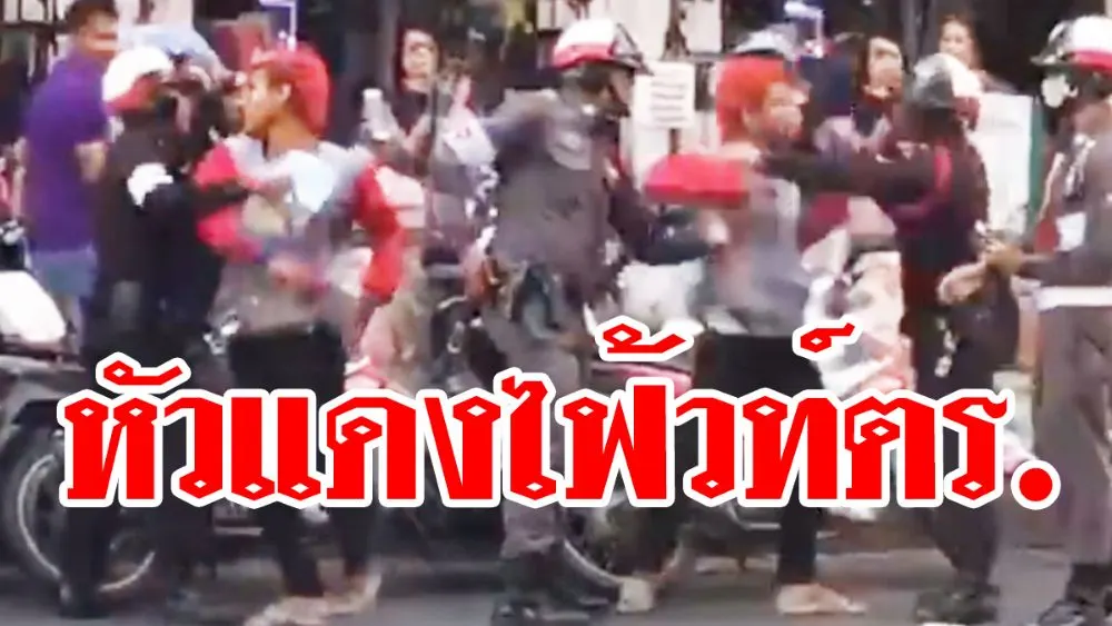 โซเชียลแชร์คลิป หนุ่มหัวเเดงสุดเก๋า จะไฟ้วท์กับตำรวจจราจร เหตุเพราะโดนเรียกจับ เนื่องจากไม่สวมหมวกกันน็อค งานนี้พี่หัวแดงไม่ยอม เดือดจัด! สาวหมัดใส่ตรวจกลางถนน.. 1 ต่อ 4 ก็ไม่กลัว พี่แม่มเก๋าจริงๆ แต่บอกเลยงานนี้ชาวเน็ตเข้าข้างตำรวจกันเป็นแถบๆ..